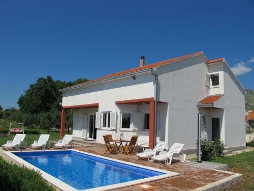 Samostatně stojící dům s bazénem, o velikosti 120 m2 na pozemku 5500 m2. V ekologické a soukromém prostředí. V naprostém klidu a míru. V blízkosti dvou historických měst Trogiru / 5km / a Splitu / 18 km /.